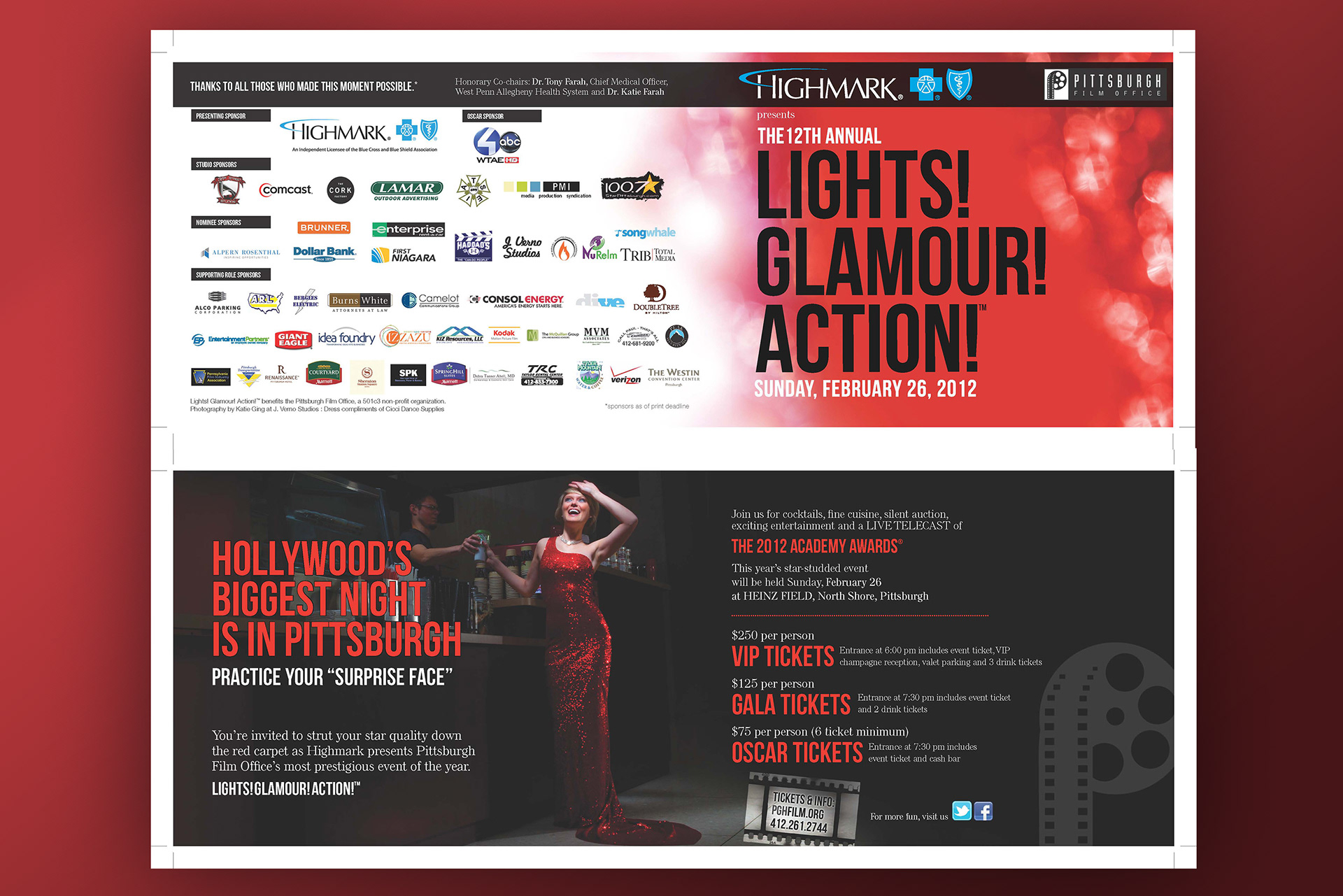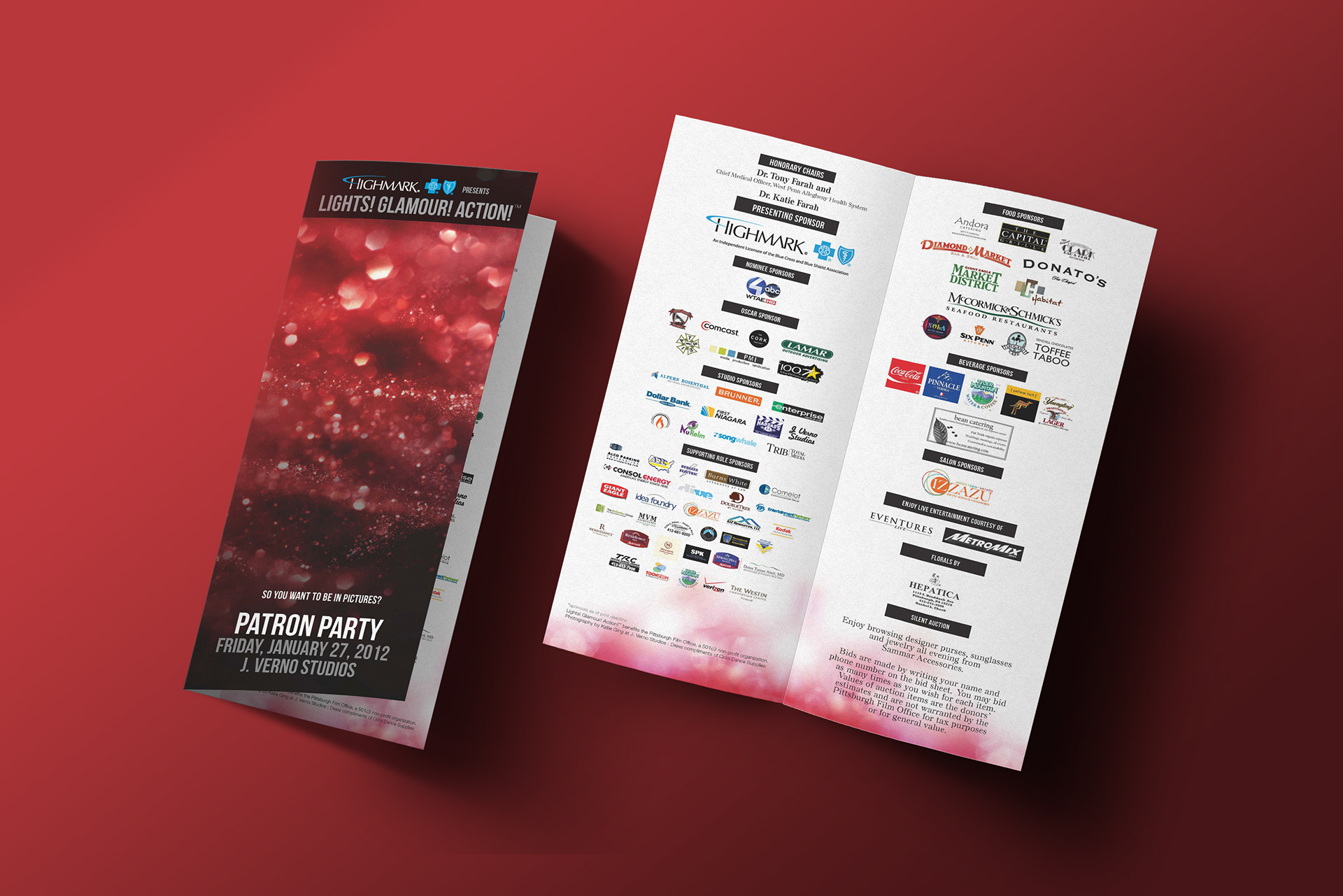 Art Director: Maria Tarquinio | Copywriter: Nicole Incardone During my internship, I contributed to the creative development of the Pittsburgh Film Office’s LGA Annual Fundraiser. I was responsible for designing the event ticket, sponsor brochure, and advertising materials—including billboards and digital ads—helping establish a cohesive visual identity across all platforms.